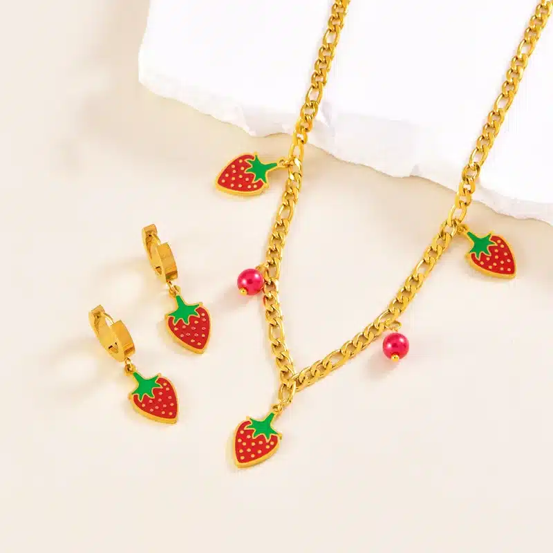 Be the first to review “New Arrival Strawberry Earrings and Necklace Set Fruit Cute Sets for Women Stylish Light Luxury Stainless Steel Jewelry Bracelet”