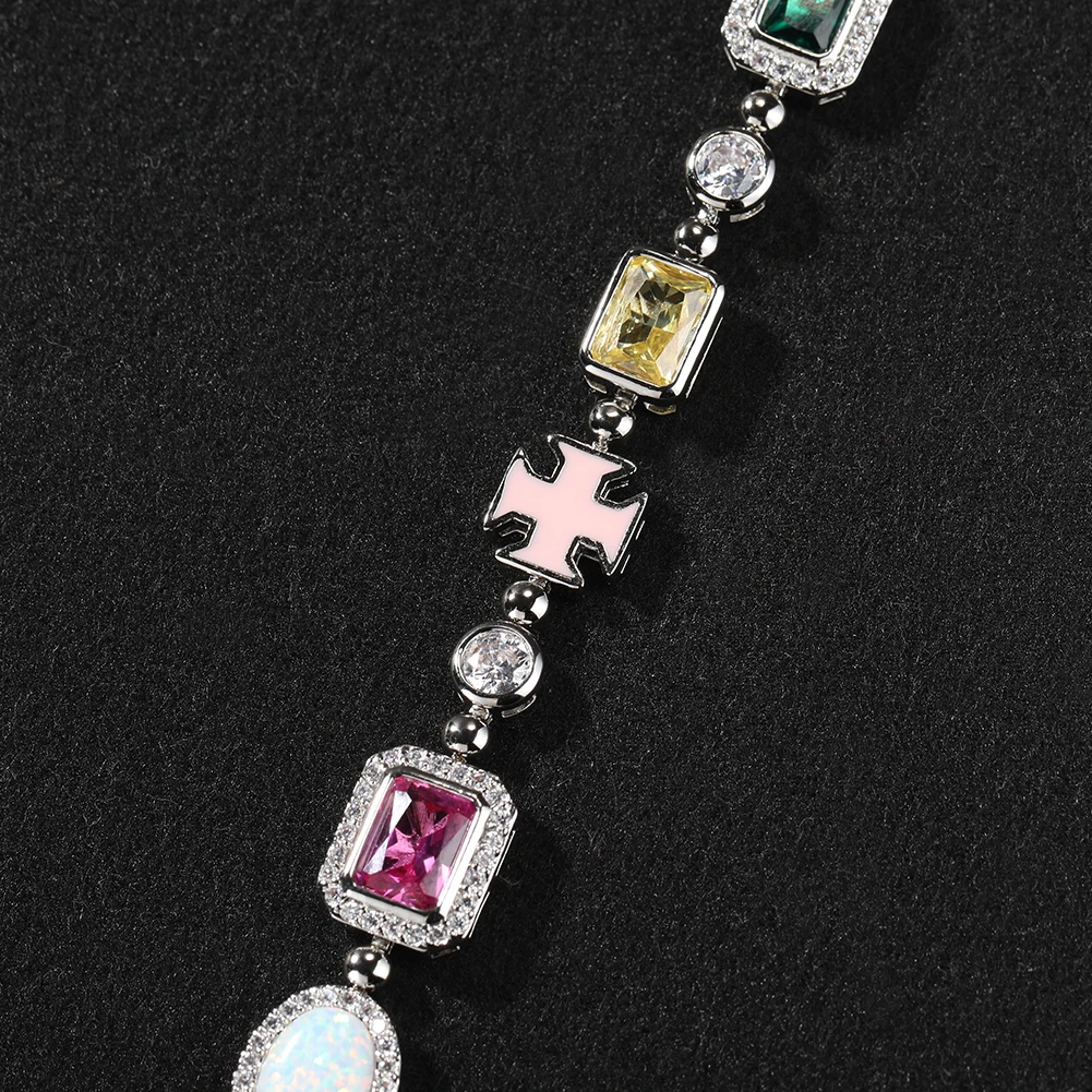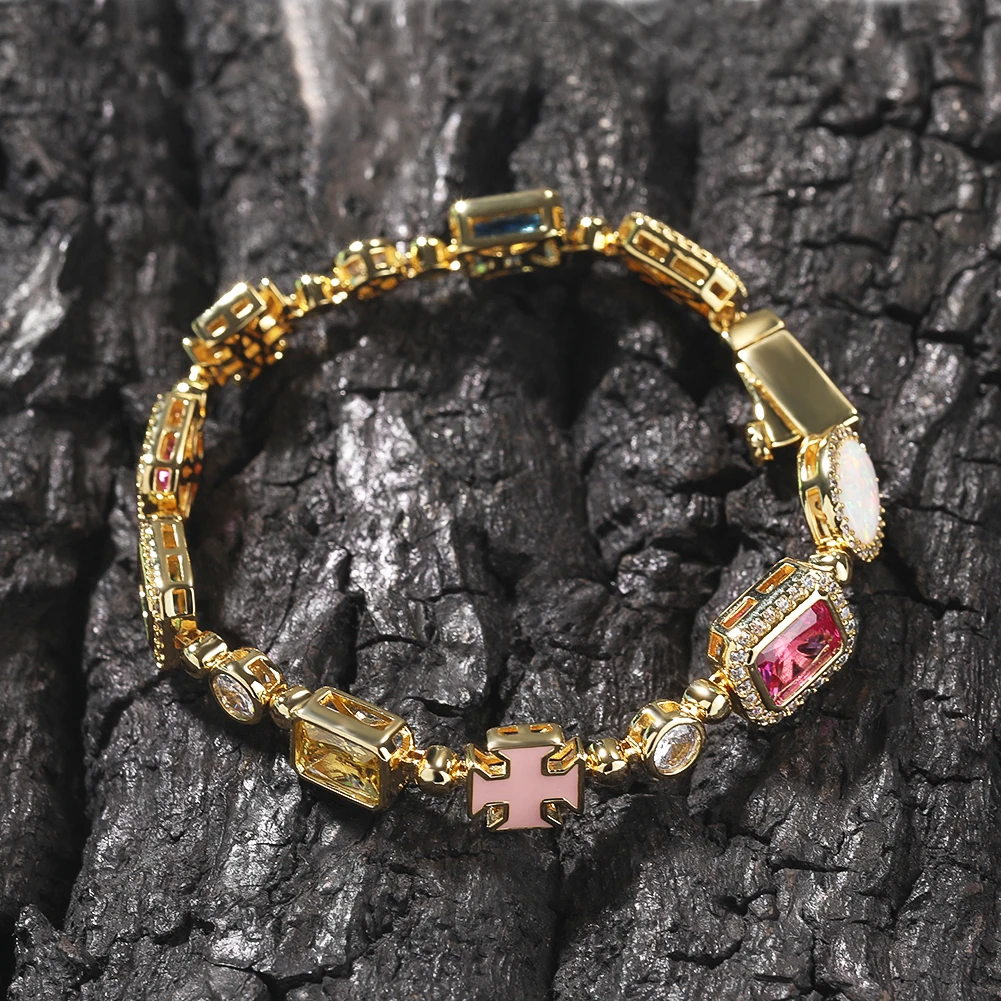 New Arrival Women’s Fashion Bezel Geometric Shaped Rainbow Cubic Zircon Tennis Chain Opal Stone Bracelet Gift for Women