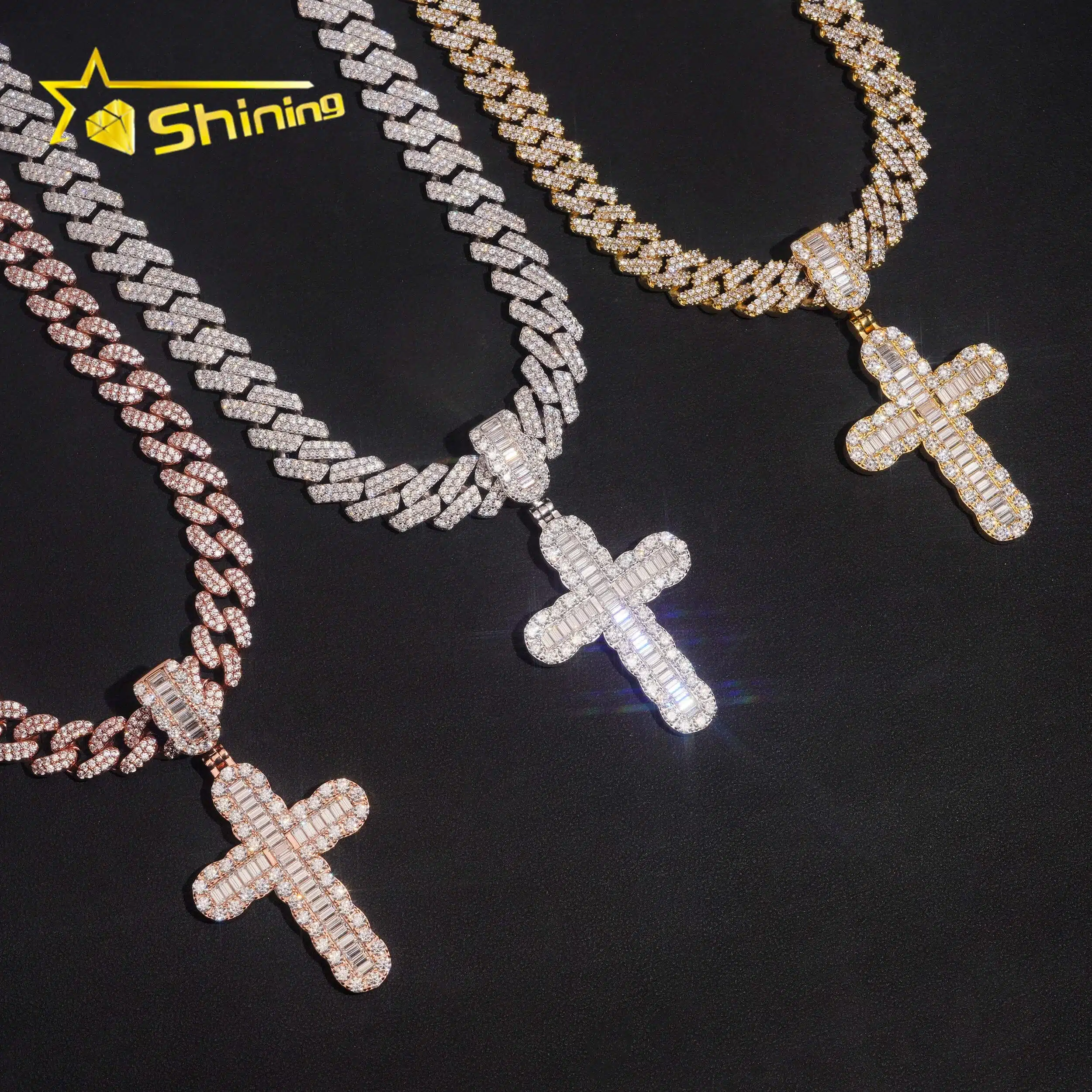 New Arrivals Hip Hop Style Rapper Jewelry 925 Silver Baguette Charms Moissanite Cross Pendant