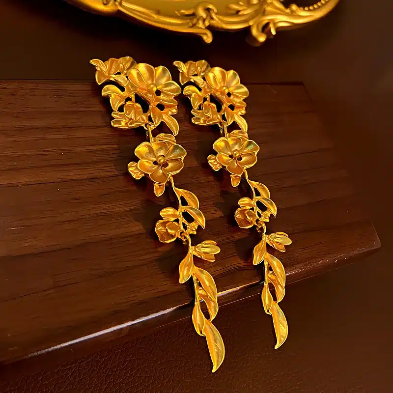 Be the first to review “New Design Fashion Jewelry S925 Silver Needle Gold Flower Long Tassel Earrings for Women” Cancel reply