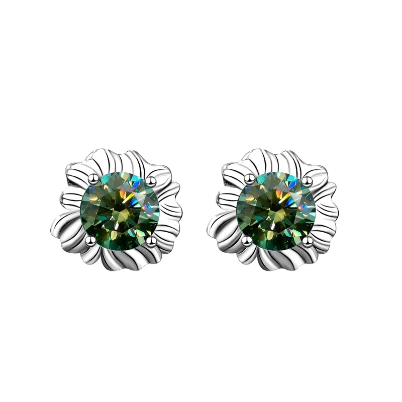 New Fashion Earrings Trend Destiny Jewellery 925 Sterling Silver Mossianite Green Sunflower Stud Earrings for Women