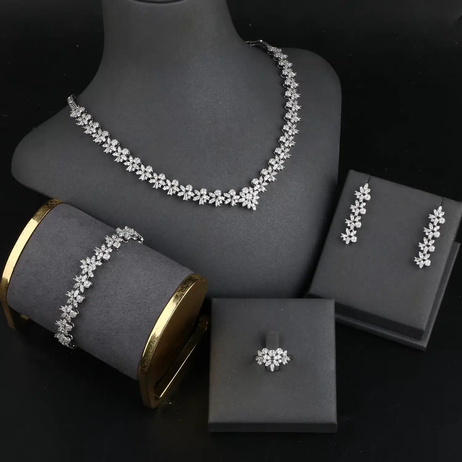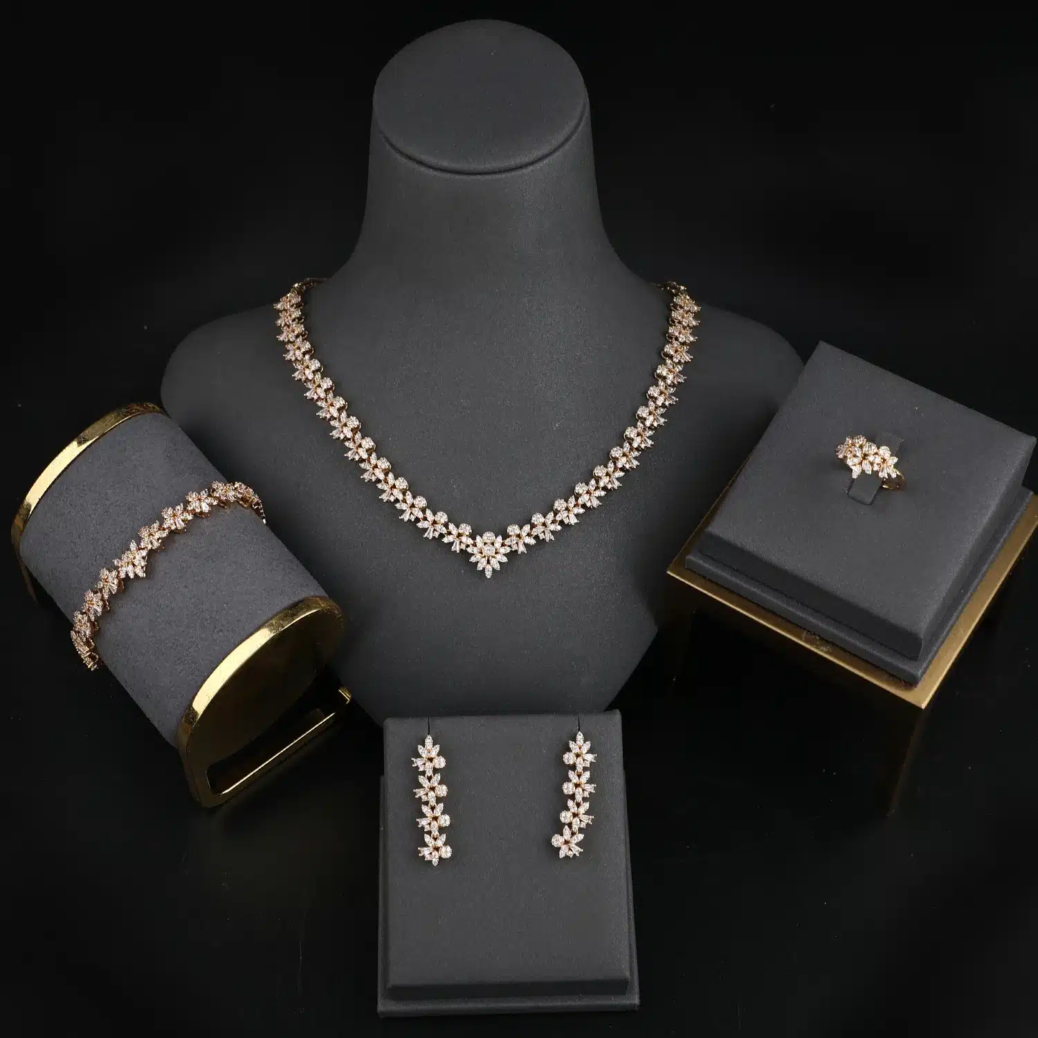 New High Quality Necklace Earrings Bracelet Ring Set Exquisite Jewellery Women Bridal Jewelry Set