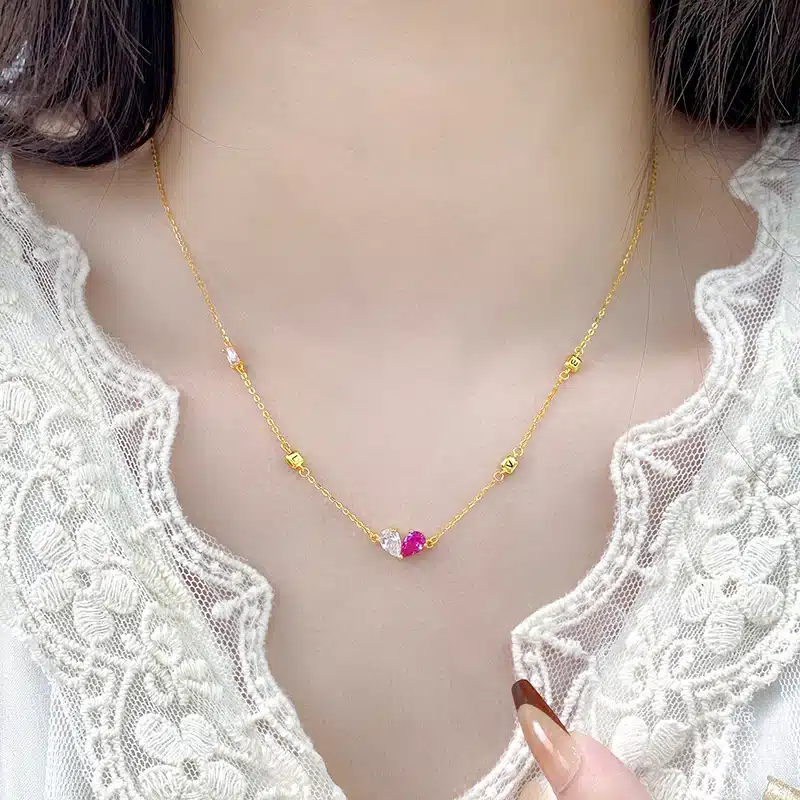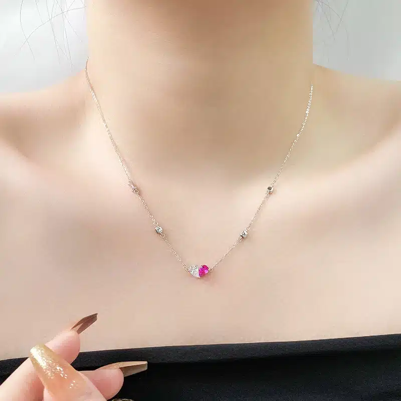 925 Silver Pendant Necklace with Red Heart & Bow New Design Fashion Jewelry Gold Plated Zircon Trendy Style for Women’s Wedding