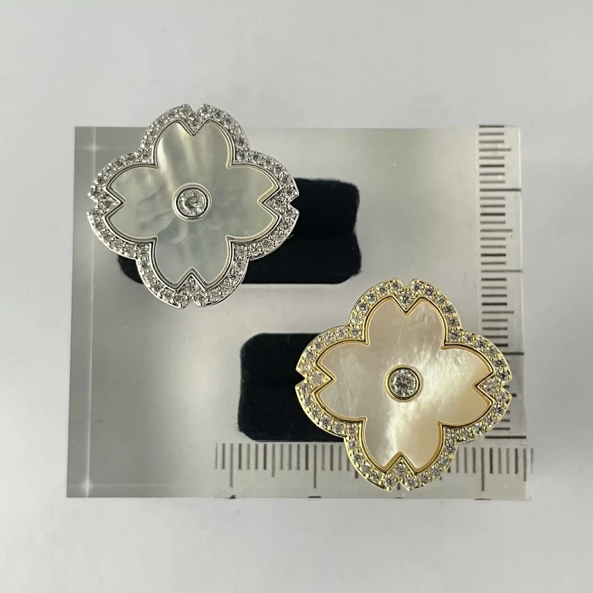 New Style Fashion Jewelry Designer Clover Resizable Ring Brass Plate 18k Gold Cowrie Shell Rings for Engagement Gift