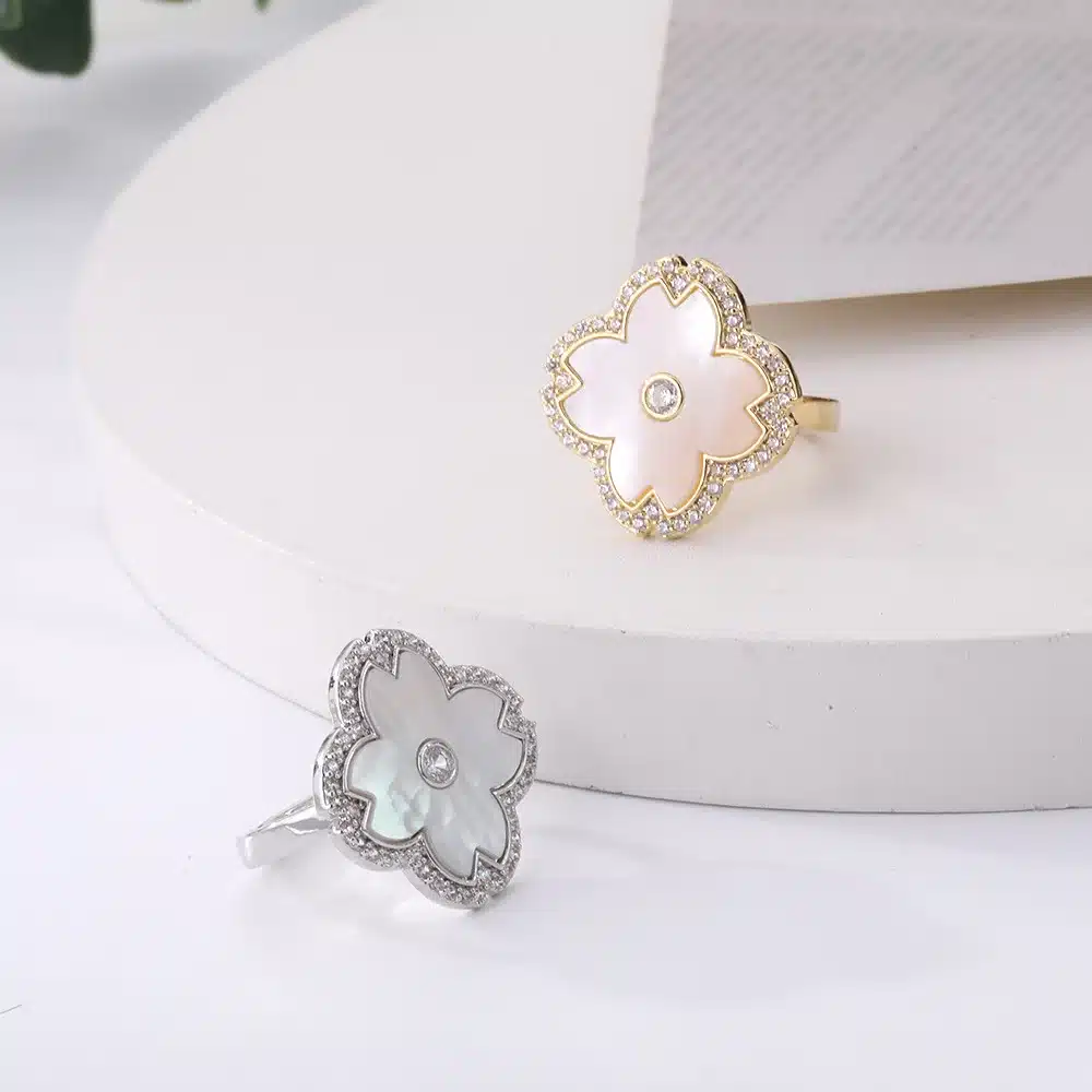 Be the first to review “New Style Fashion Jewelry Designer Clover Resizable Ring Brass Plate 18k Gold Cowrie Shell Rings for Engagement Gift”