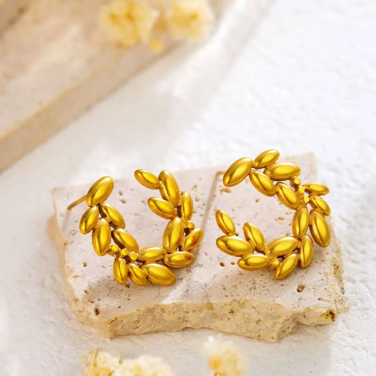 New Titanium Steel Wheat Necklace Earrings Jewelry Women’s Fashion Wheat Women’s Jewelry Set Wholesale