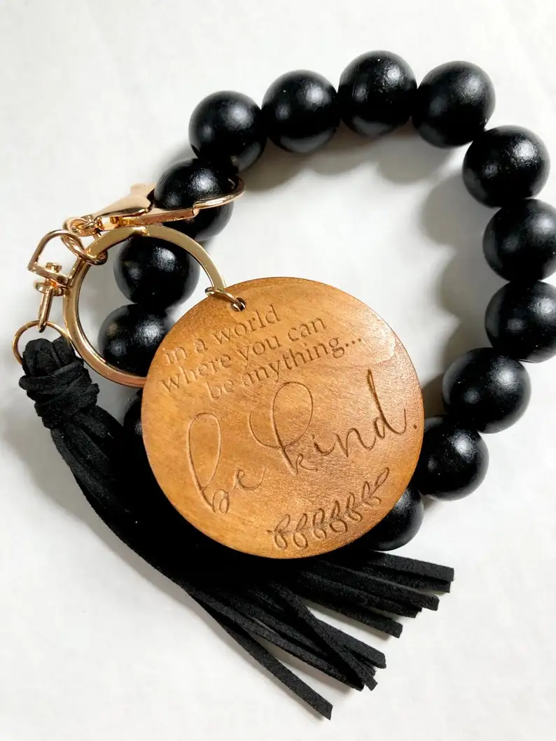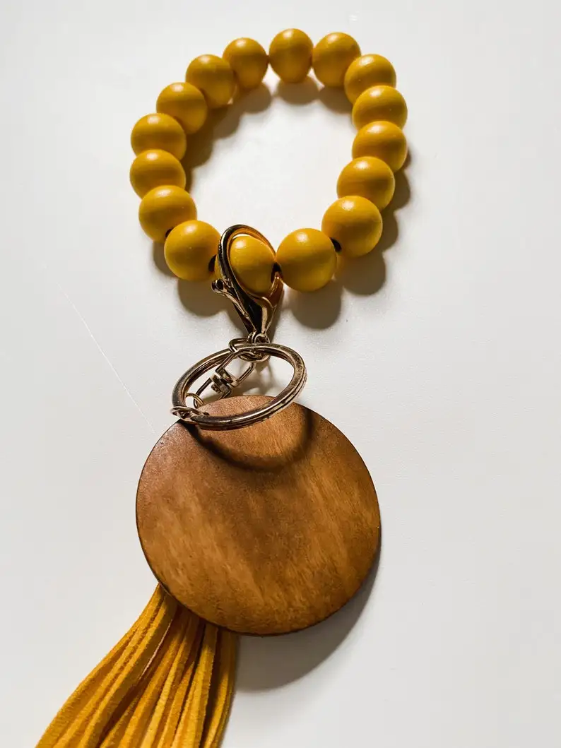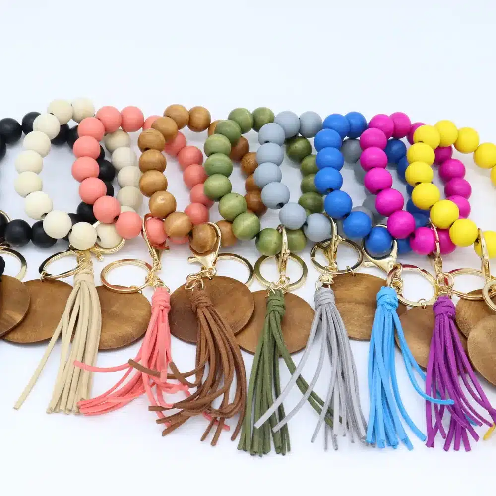 Be the first to review “New Trendy Colored Wood Beads Elastic Keyring Bracelet Wholesale for Women Tassel Keychains” Cancel reply