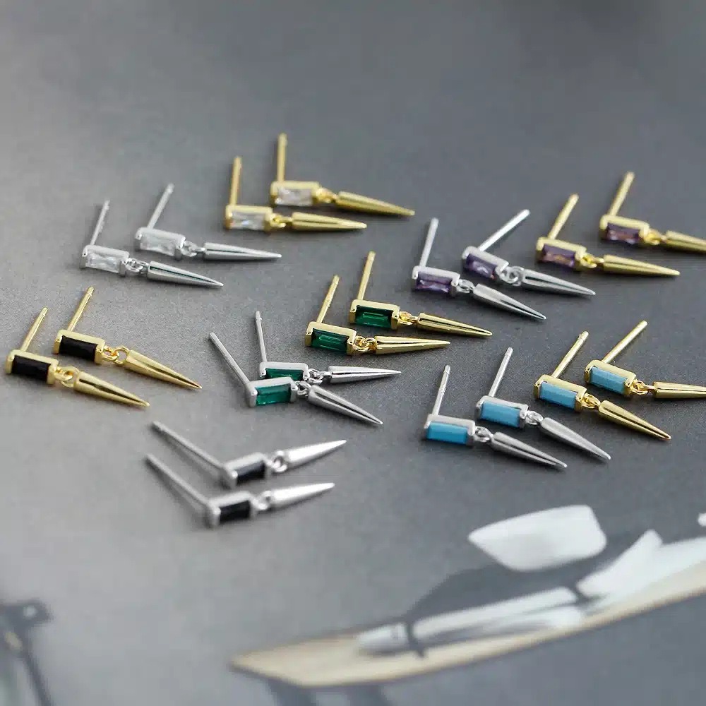 Be the first to review “NEW Wholesale Fashion Jewelry 925 Sterling Silver square Zircon Cone Dangle Gold Plated Stud Earring Jewelry for Women” Cancel reply