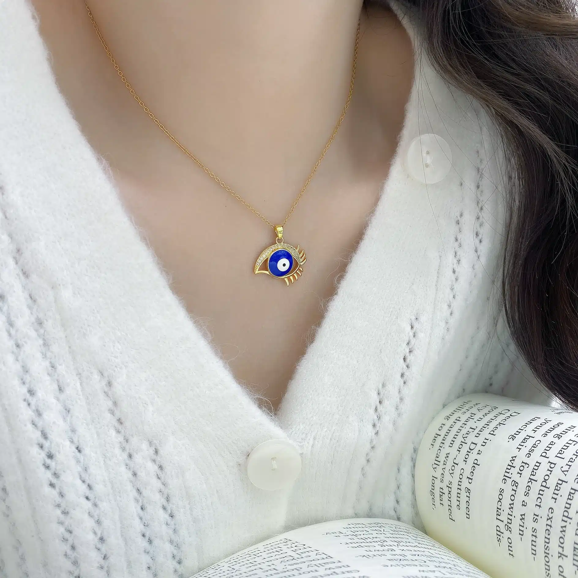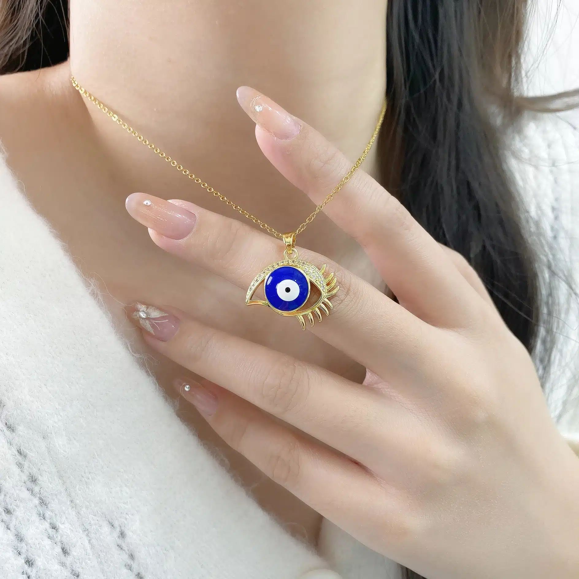 Newest Design 18K Gold Evil Eye Necklace 925 Silver Fine Jewelry Enamel Blue Eye Necklace for Women