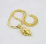 Be the first to review “NJC Men’s & Women’s Hip Hop Jewelry Iced Clear Rhinestones Gold Plated Curb Cuban Chain Gold Crown Lion Head Pendant Necklace” Cancel reply