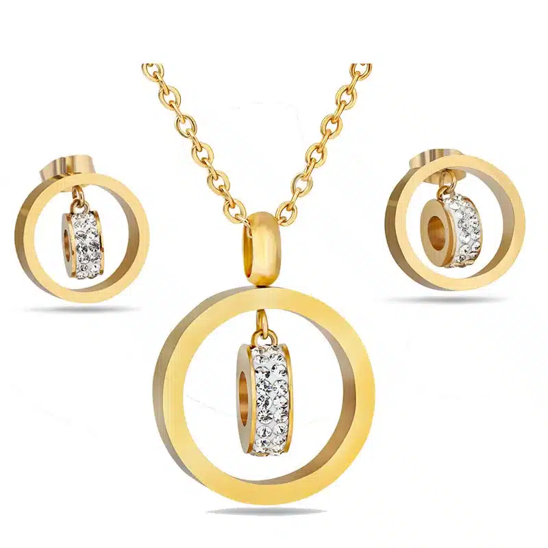 Be the first to review “No Fade Stainless Steel Jewelry Set No Tarnish Non Rust Necklace Earring Crystal Steel Jewellery Set”