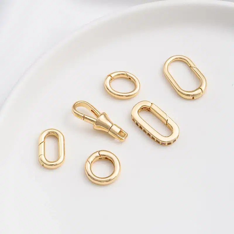 Non Tarnish 14k Gold Plated Thin Push up Gate Round Oval Lock Clasp Silver for Necklace Jewelry