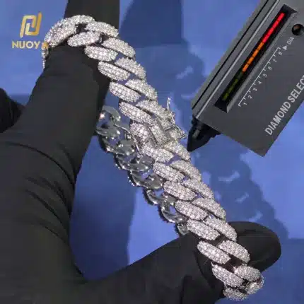 NUOYA 10mm Hip Hop Jewelry Iced Out VVS Moissanite Miami Cuban Link Chain in Silver 925 Cuban Link Chain Bracelet