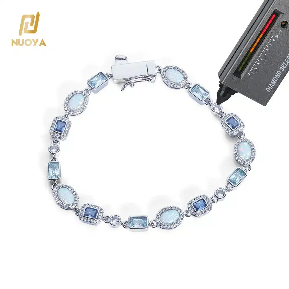 NUOYA Iced Out 6mm VVS Moissanite Chain 925 Silver Geometric Design Multicolor CZ Stones Hip Hop Bracelet Gift