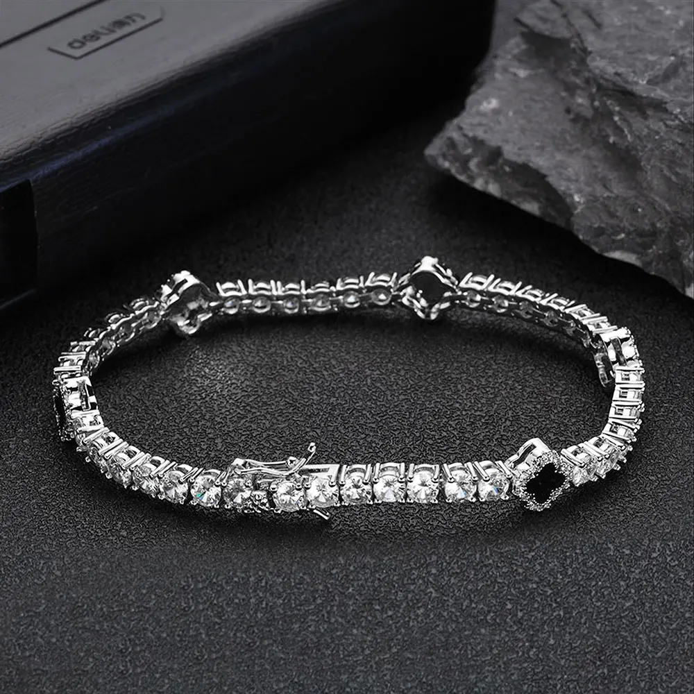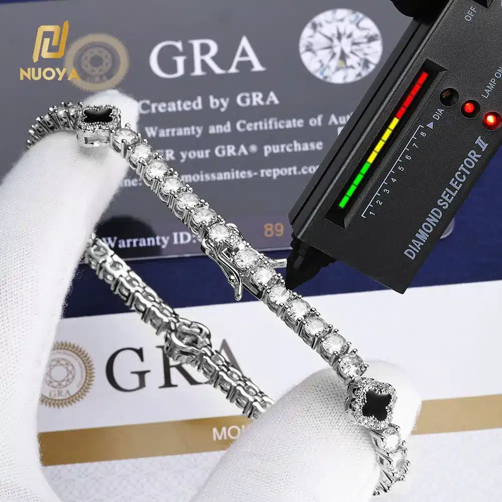 NUOYA Luxury Hip Hop Tennis Chain Bracelet Iced Out VVS Moissanite S925 Silver Four-Leaf Clover Tennis Chain Gift for Men Women