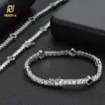 NUOYA Fine Jewelry Cuban Chain 4mm 925 Silver VVS Moissanite Round Beads Iced Out Hip Hop Bracelet