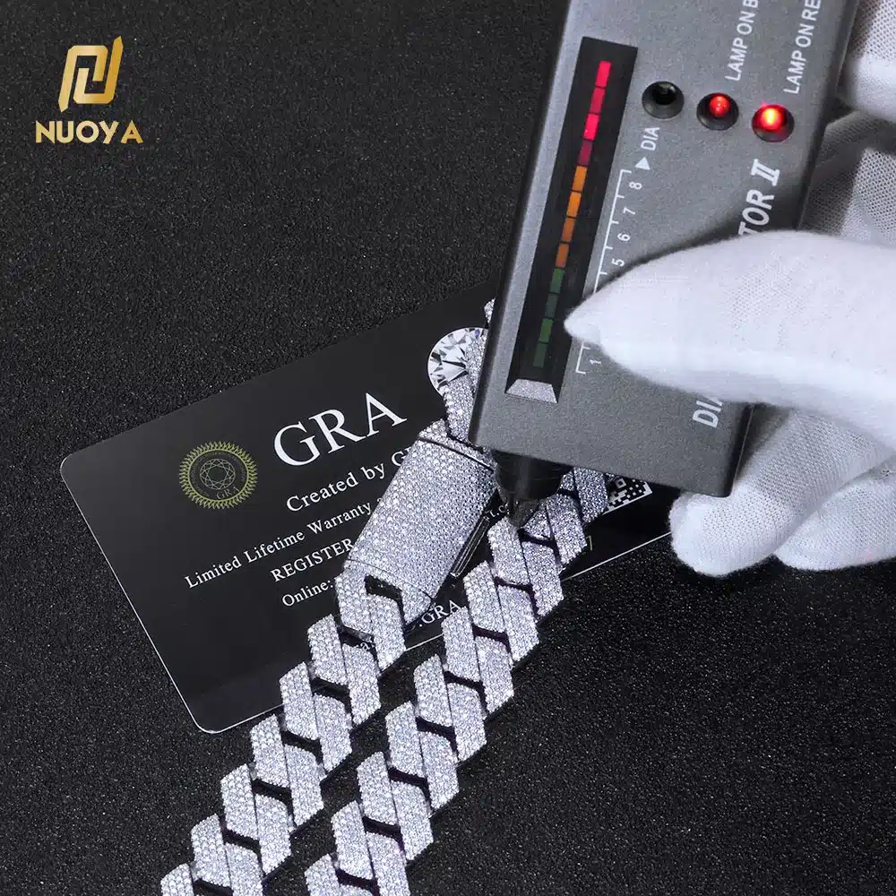 NUOYA 10mm Hip Hop Jewelry Iced Out VVS Moissanite Miami Cuban Link Chain in Silver 925 Cuban Link Chain Bracelet