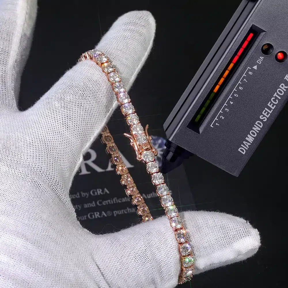 NUOYA VVS Moissanite Tennis Bracelet Women Iced Out Round Brilliant Cut 925 Silver Rose Gold Plated Jewelry Gift for Party