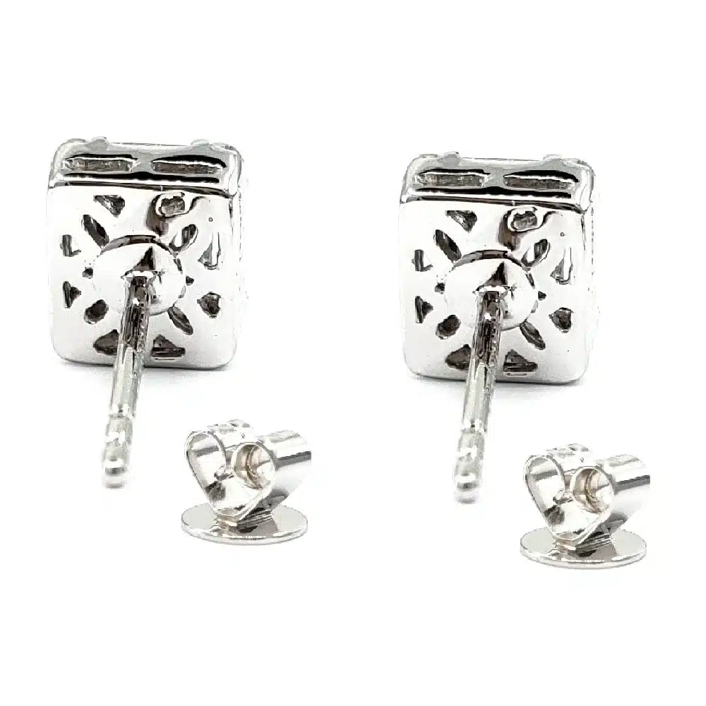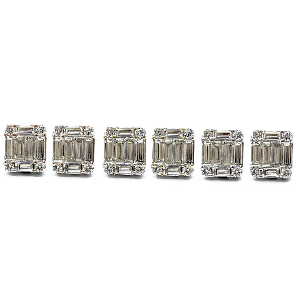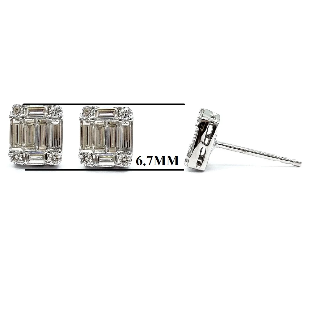 OEM Design Fashion square Shape Fine Jewellery 18k White Gold Natural Diamond baguette Cluster Stud Earrings