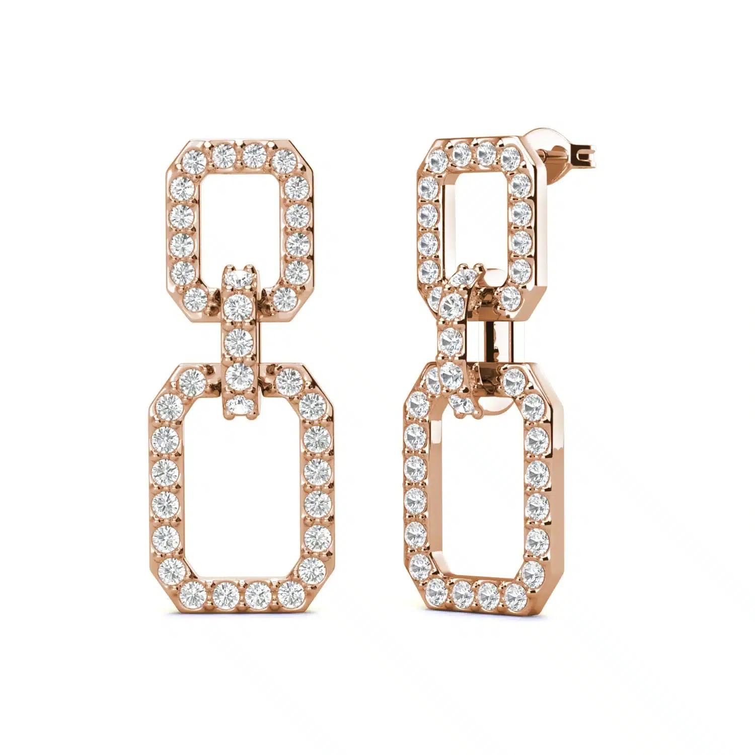 Double Heart Stud Earrings Embellished with Swarovski Crystals Interlocking Love Heart-shaped Rose Gold Yellow Gold Daisini