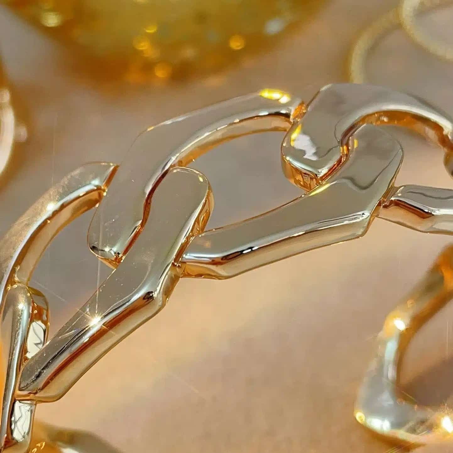 PCX Jewelry 18K Pure Gold Cuban Hollow Bracelet Classic Style Charm Bracelets for Everyday Wear and Party Occasions