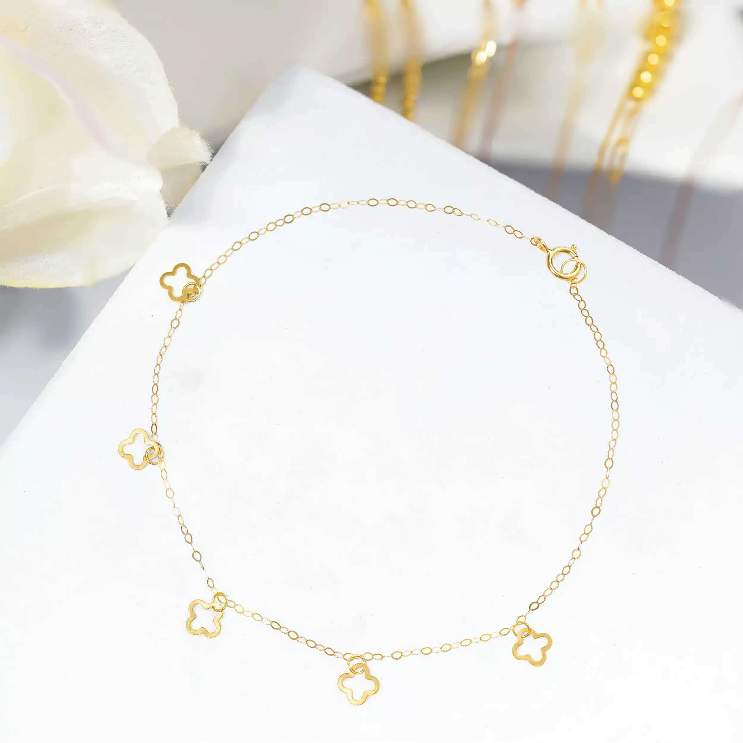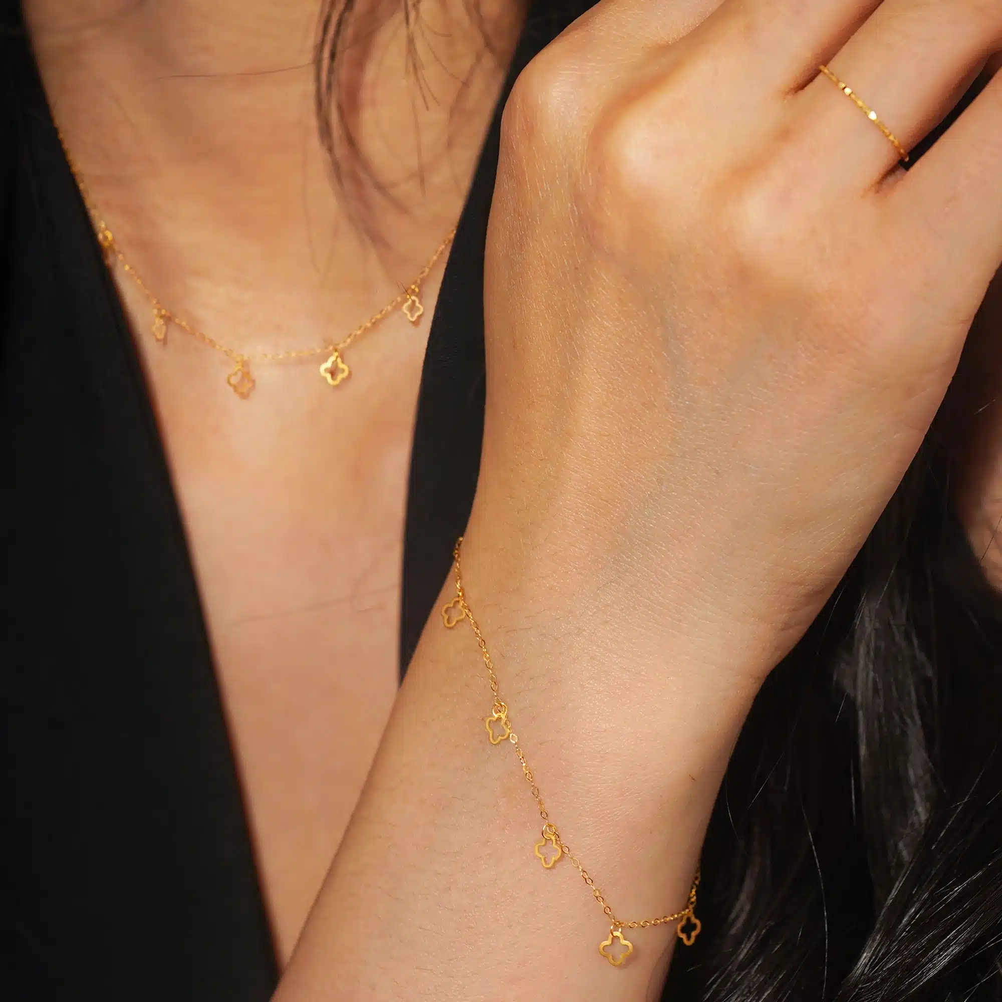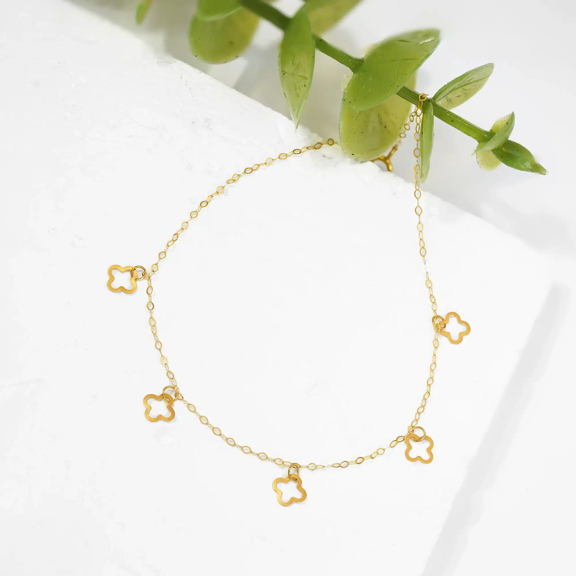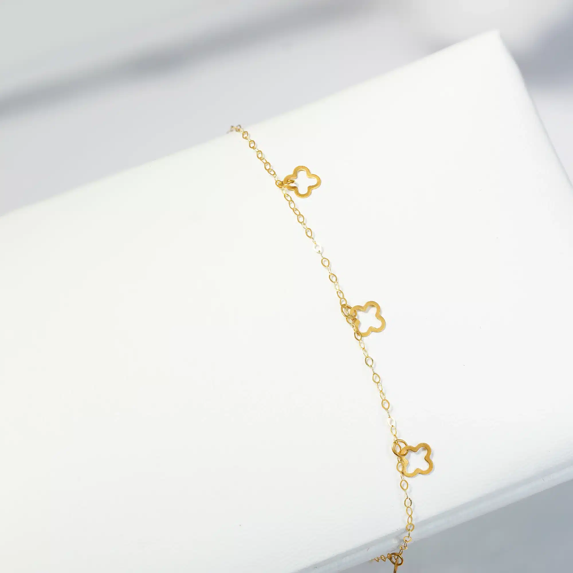 PCX Jewelry Wholesale High Quality Jewelry Women Popular 18k Gold Non Tarnish Chain Five Hollow Four Leaf Clover Bracelet