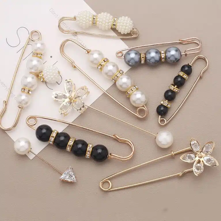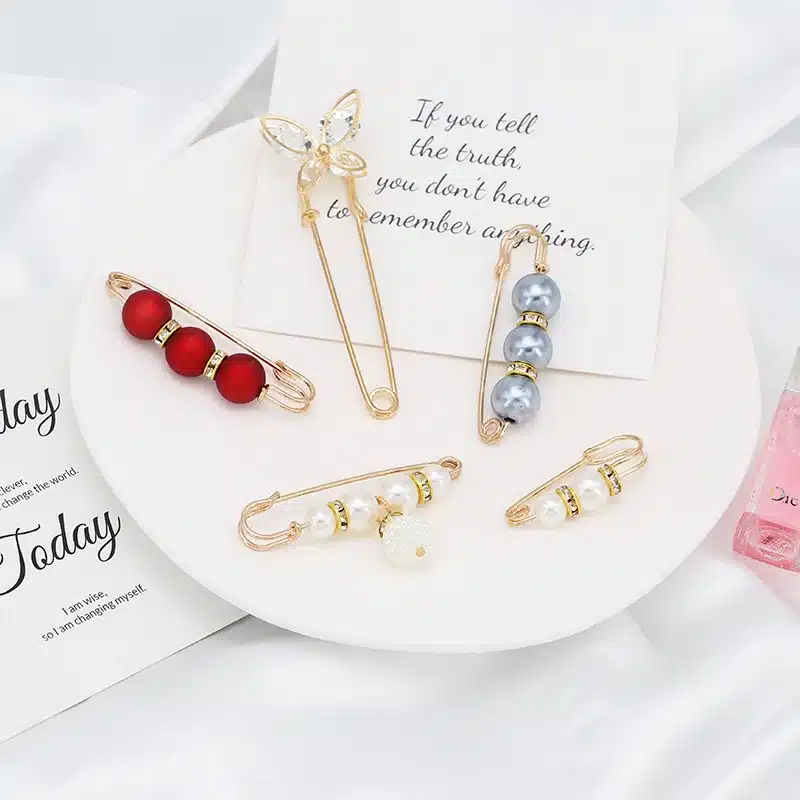 Pearl Hijab Pins Cute Brooches Pins Pearl Neckline Collar Lapel Hijab Fixed Tightening Waist Clothes Brooch Scarf DIY Accessory