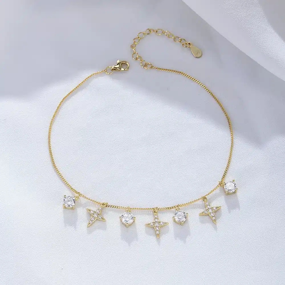 Be the first to review “Peishang Adjustable Chain Choker Anklet 925 Sterling Silver Gold Plated Round Zirconia Bling Star Charm Anklet for Ladies” Cancel reply