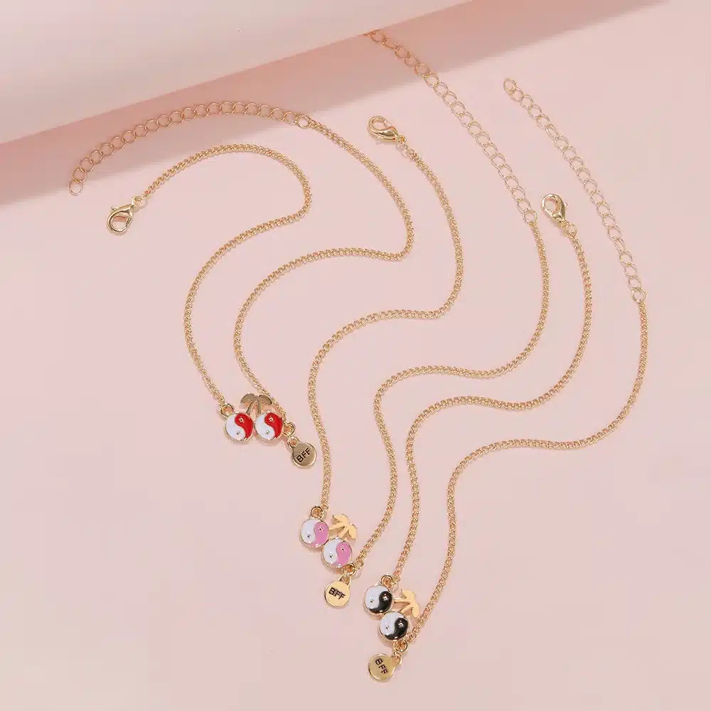 Popular Cartoon Tai Chi Pattern Necklace Three-Piece Pendant Cute Alloy Jewelry for Gift Same Style BFF Best Friend’s Tee Sale