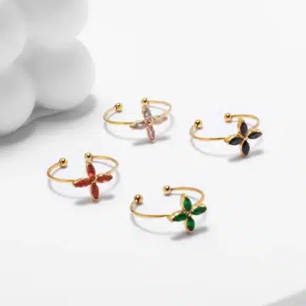Delicate Flower Ring 18k Gold Plated Colorful Crystal Four Leaf Clover Rings Adjustable Stackable Rings