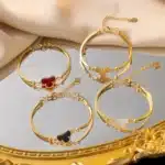 Be the first to review “Popular Waterproof Black Red Clover Bangle 18K Gold Stainless Steel Gold Four Leaf Clover Bracelet Bangle” Cancel reply