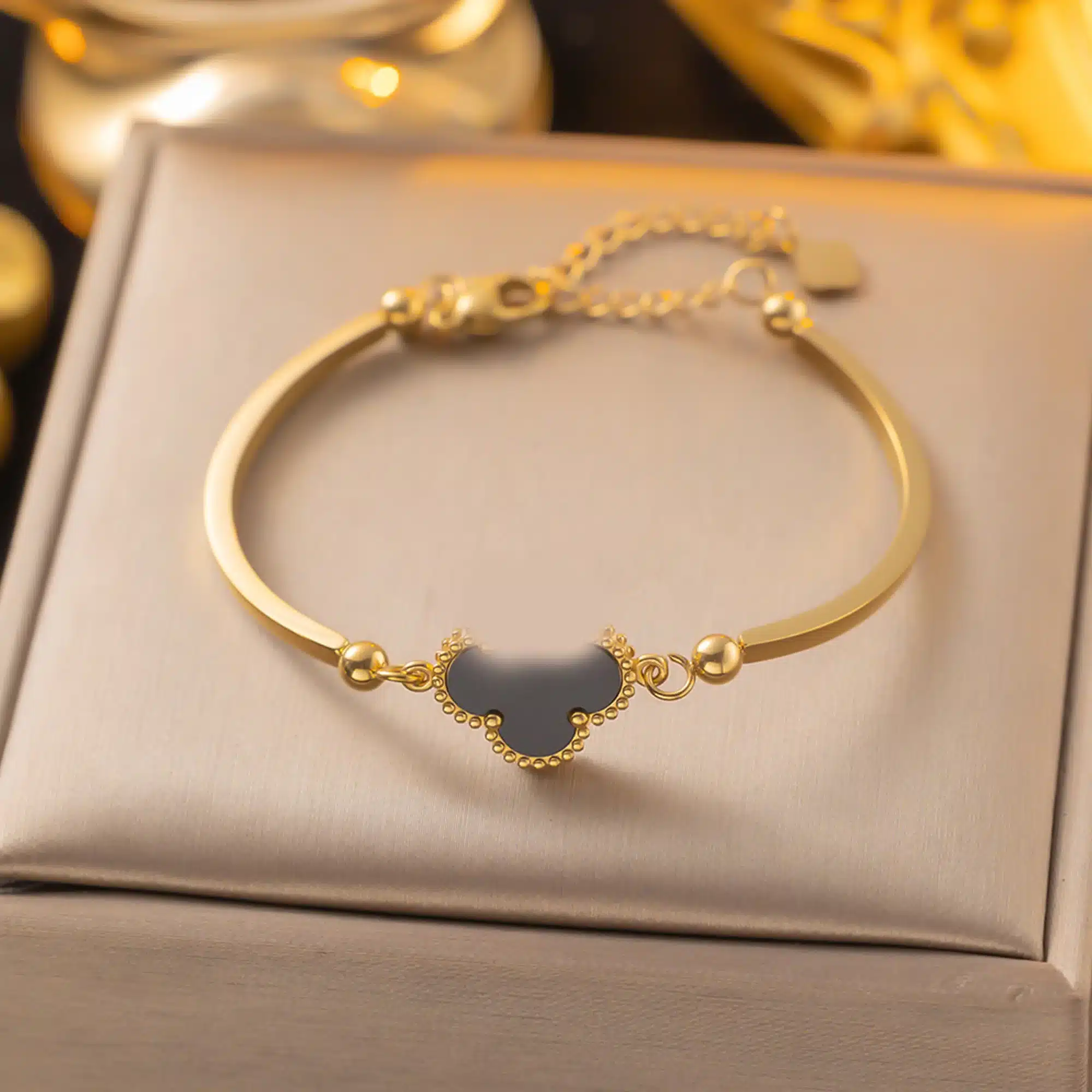 Tags: Bracelet For Women, Fashion Jewelry, Fine Jewelry, Four-leaf Clover Bracelet, Gold Clover Bangle