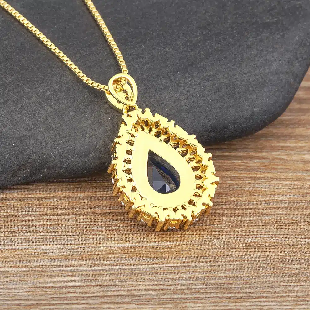 QIKU Exquisite Water Droplet Shape 5 Colors Rhinestone Pendant Women Necklace Copper Zircon Jewelry Accessories Anniversary Gift