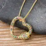 Be the first to review “QIKU Hot Sale Heart Shape Rainbow Crystal Pendent Necklace Women Cubic Zircon Gold Plated Jewelry Accessories Party Wedding Gift” Cancel reply