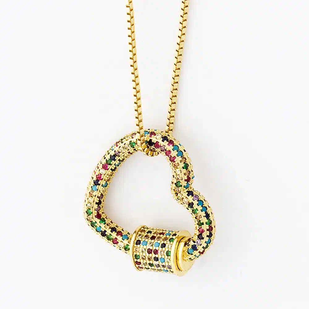 Be the first to review “QIKU Hot Sale Heart Shape Rainbow Crystal Pendent Necklace Women Cubic Zircon Gold Plated Jewelry Accessories Party Wedding Gift” Cancel reply