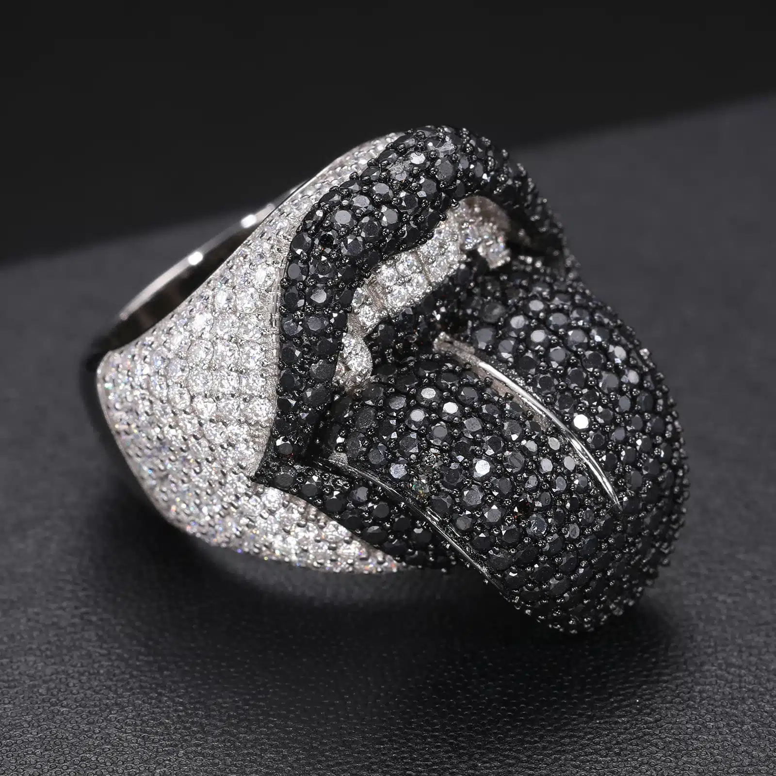 Rapper Jewelry White Gold Plated 925 Sterling Silver VVS Moissanite Diamond Iced Out Tongue Lip Ring Hip Hop Lick of Death Ring