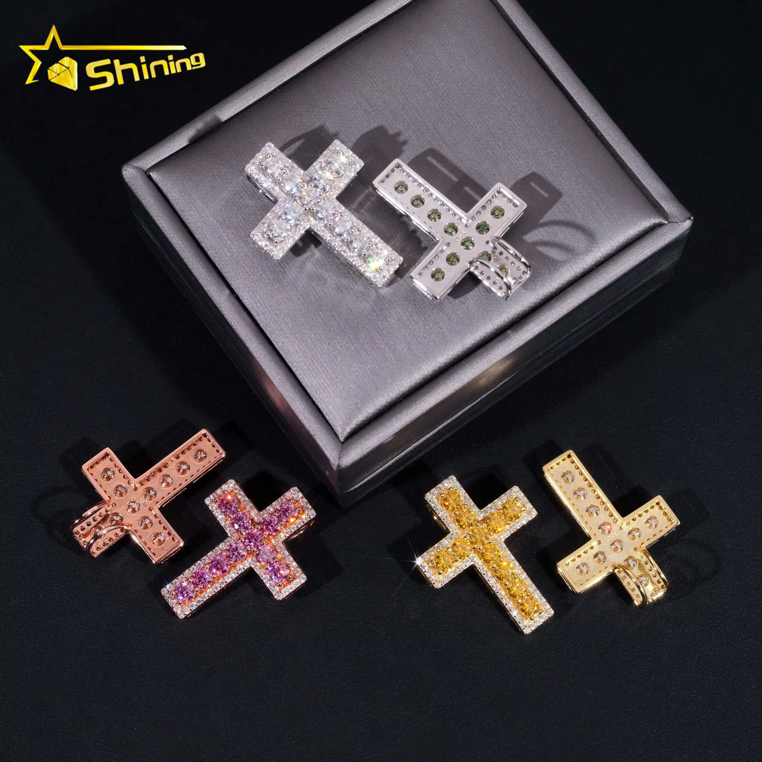 Ready to Ship Valentine Gift Colorful Moissanite Pendant 925 Silver Gold Plated Iced Out Pendant Moissanite Cross Pendant