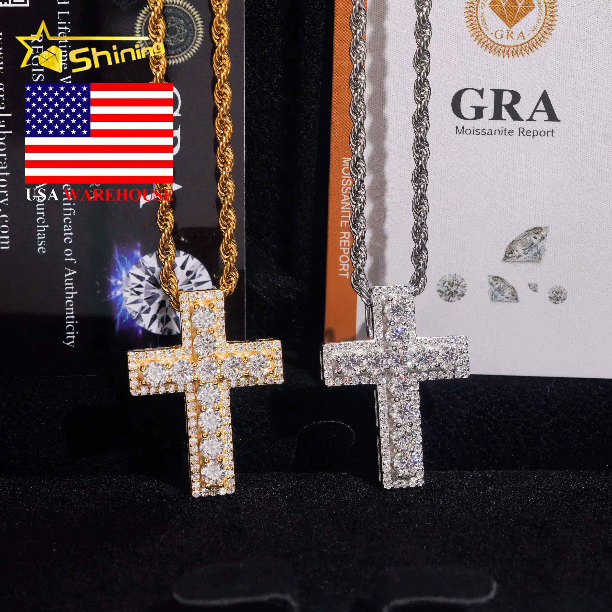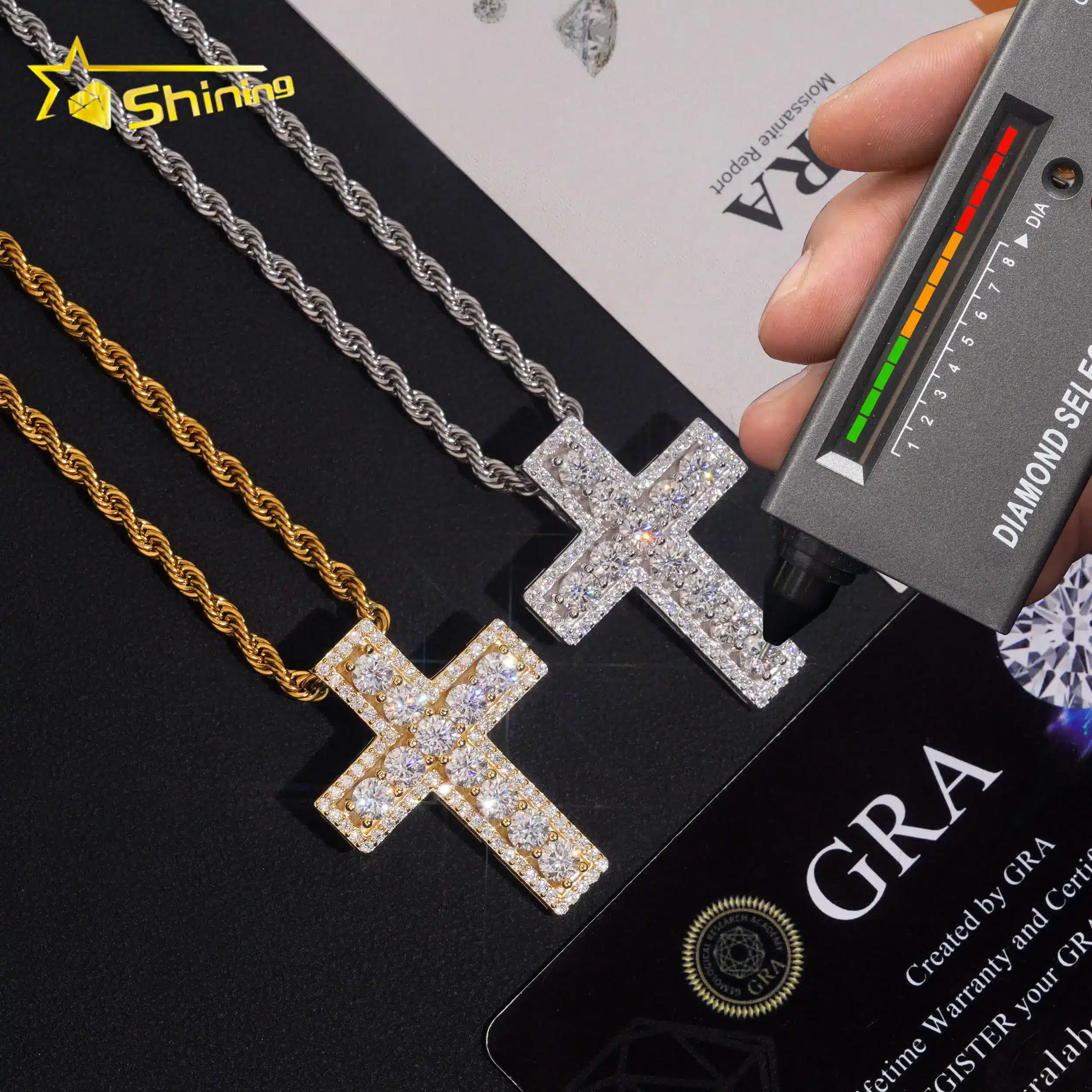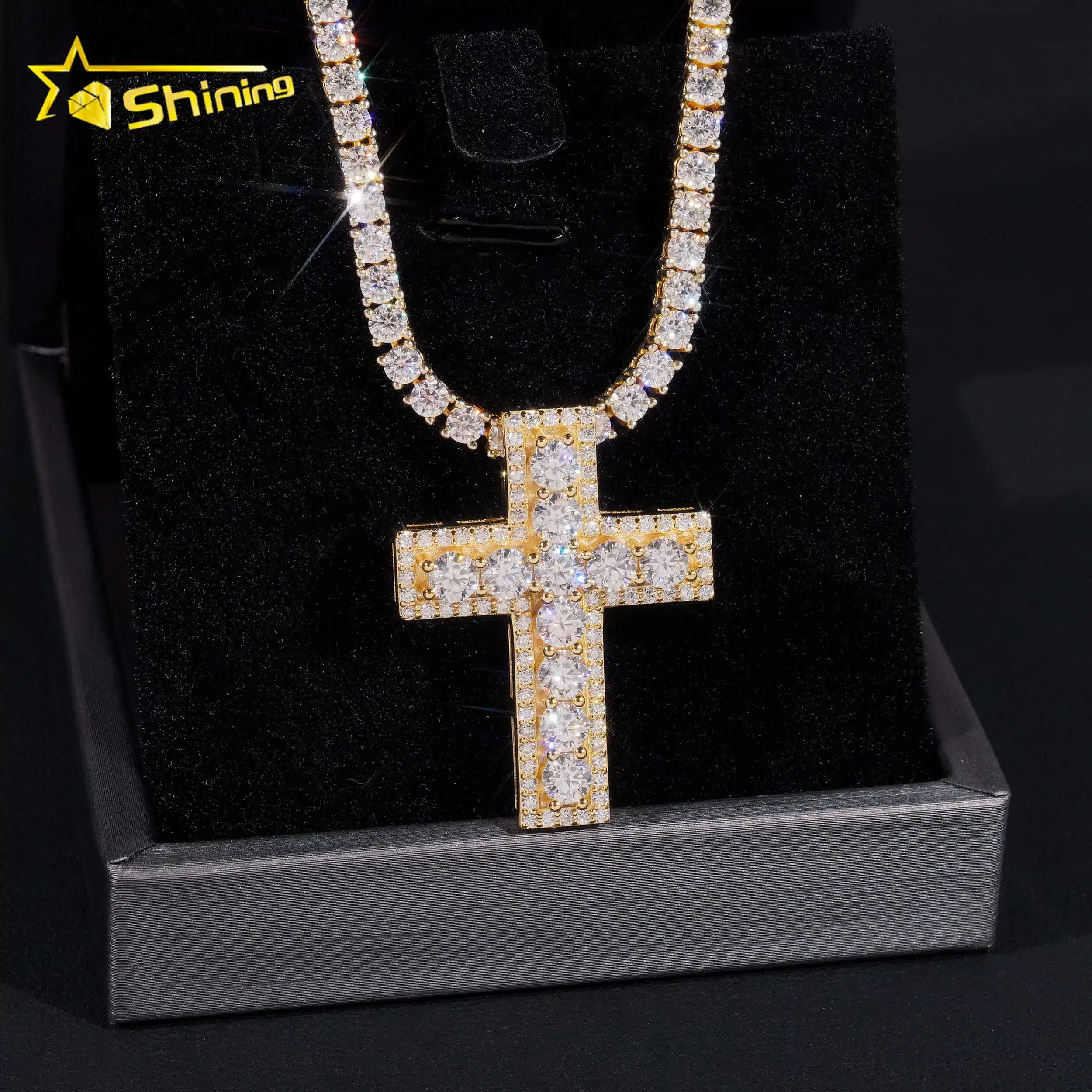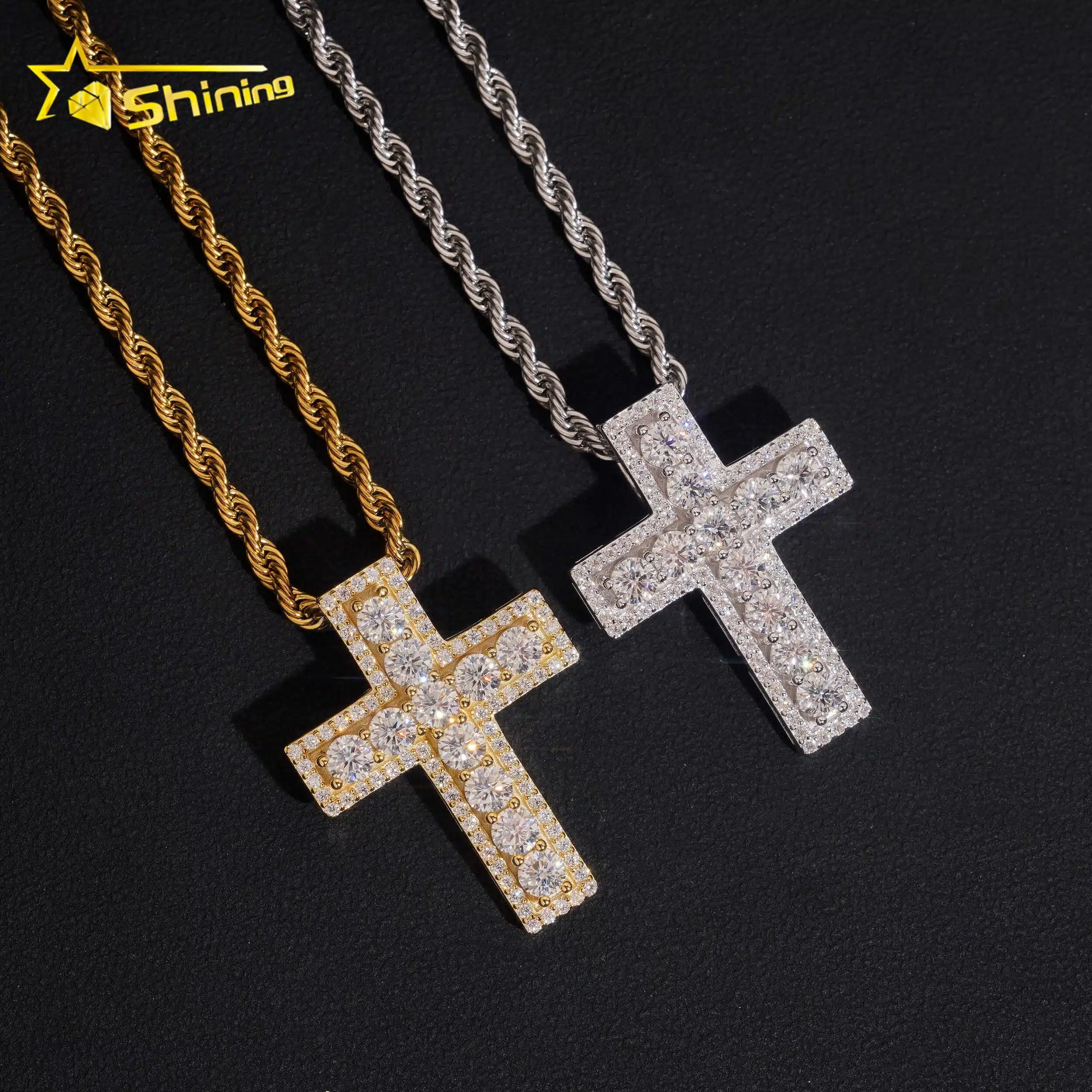 New Design Hot Selling 925 Sterling Silver Gold Plating Hip Hop Jewelry VVS Diamond Necklace Moissanite Iced Out Cross Pendant