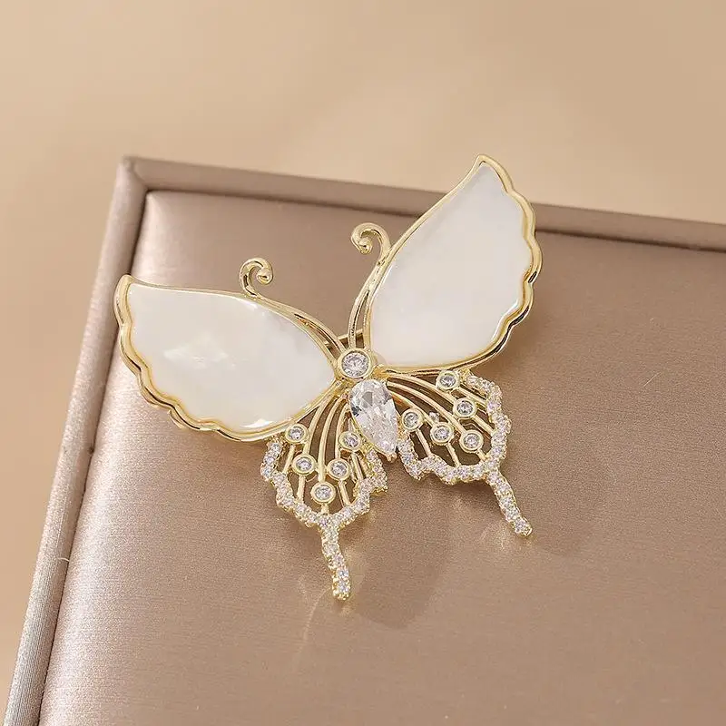 Rinhoo Elegant Natural Shell Crystal Brooch Pin Butterfly Wings Women Suit Rhinestone Brooch Pins Elegant Clothing Accessories