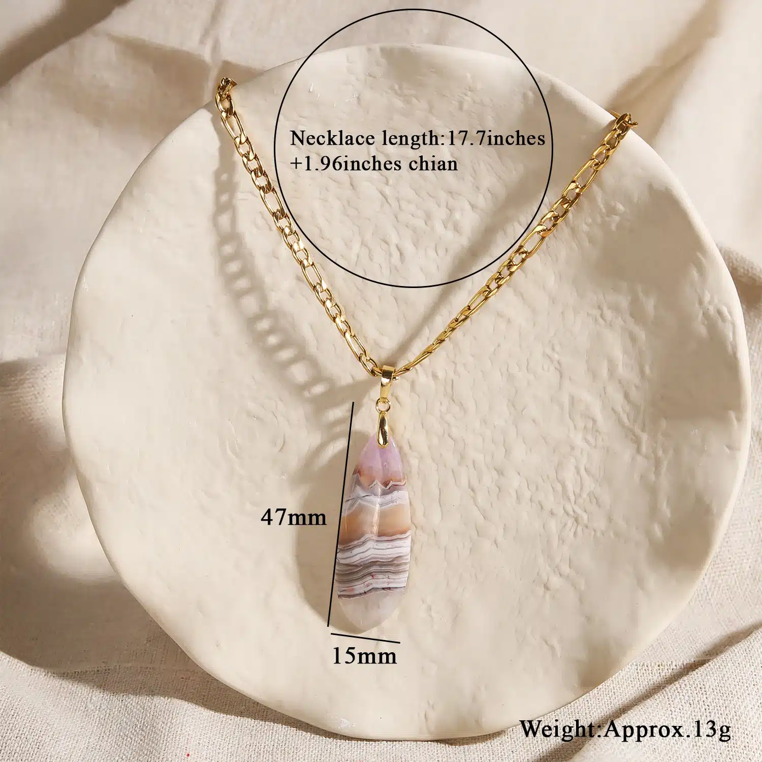 Key attributes Jewelry Main Material:Steel Material Type:Steel Main Stone:Labradorite chain type:Link Chain Style:Classic Plating:Gold Plated Occasion:Daily Application:Daily Shapepattern:As Picture Gender:Unisex