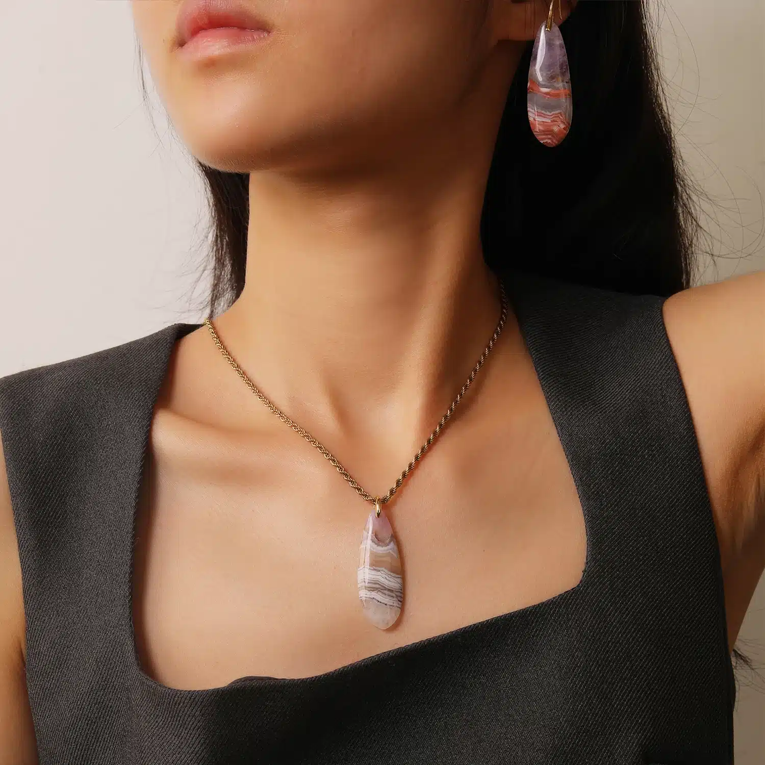 Be the first to review “Romantic Spirit Stone Necklace Earrings Set 18K Gold Elegant Natural Crystal Fashionable Healing Amethyst Agate Gem for Parties” Cancel reply