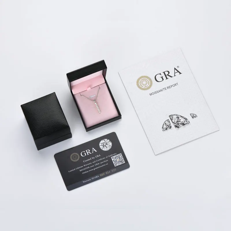 New Arrival GRA Certification 925 Sterling Silver Round Cut 1ct 0.1ct Moissanite 3-stone Pendant Necklace for Women