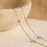 New Gold Plated S925 Sterling Silver Butterfly Clover Jewelry Set for Women Pendant Necklace Bracelet Earrings Gift