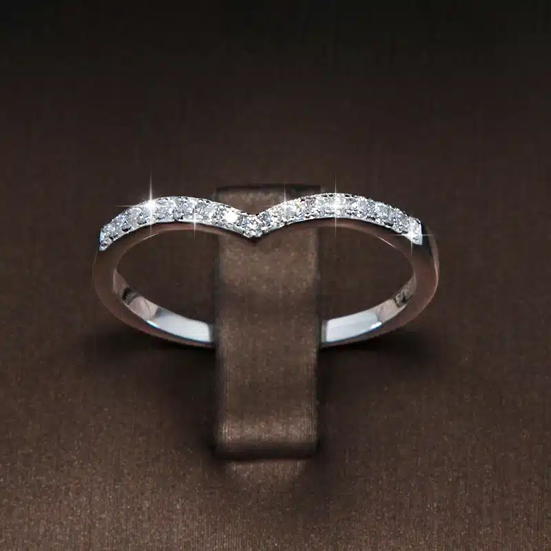 S925 Sterling Silver Personality 18K White Gold Plated V-Shaped Diamond Moissanite Ring for Women Valentine’s Day Gifts