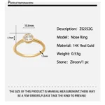 Sense Jewelry Factory Zircon Nose Ring Earring Closing Ring Body Piercing Accessory 14K Real Gold Nose Ring