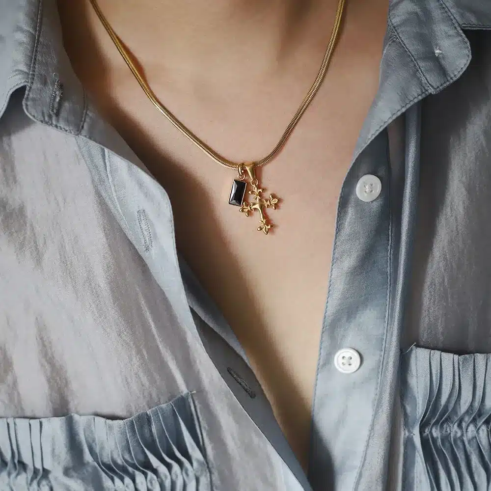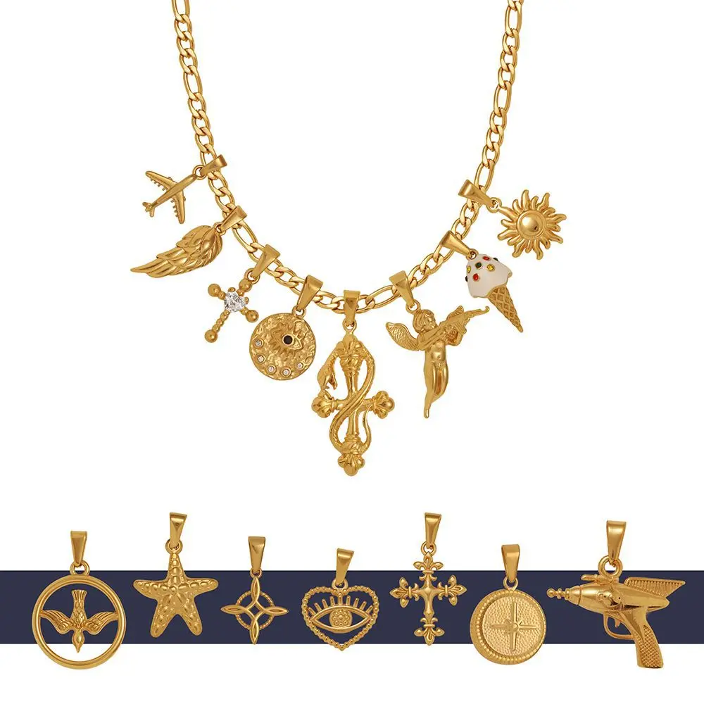 Series Pendant Necklace Retro European American Style Ice Cream Aircraft Design Cross Gold Stainless Steel Titanium Gold
