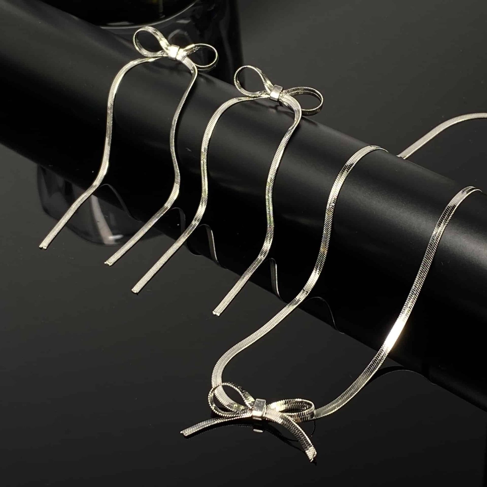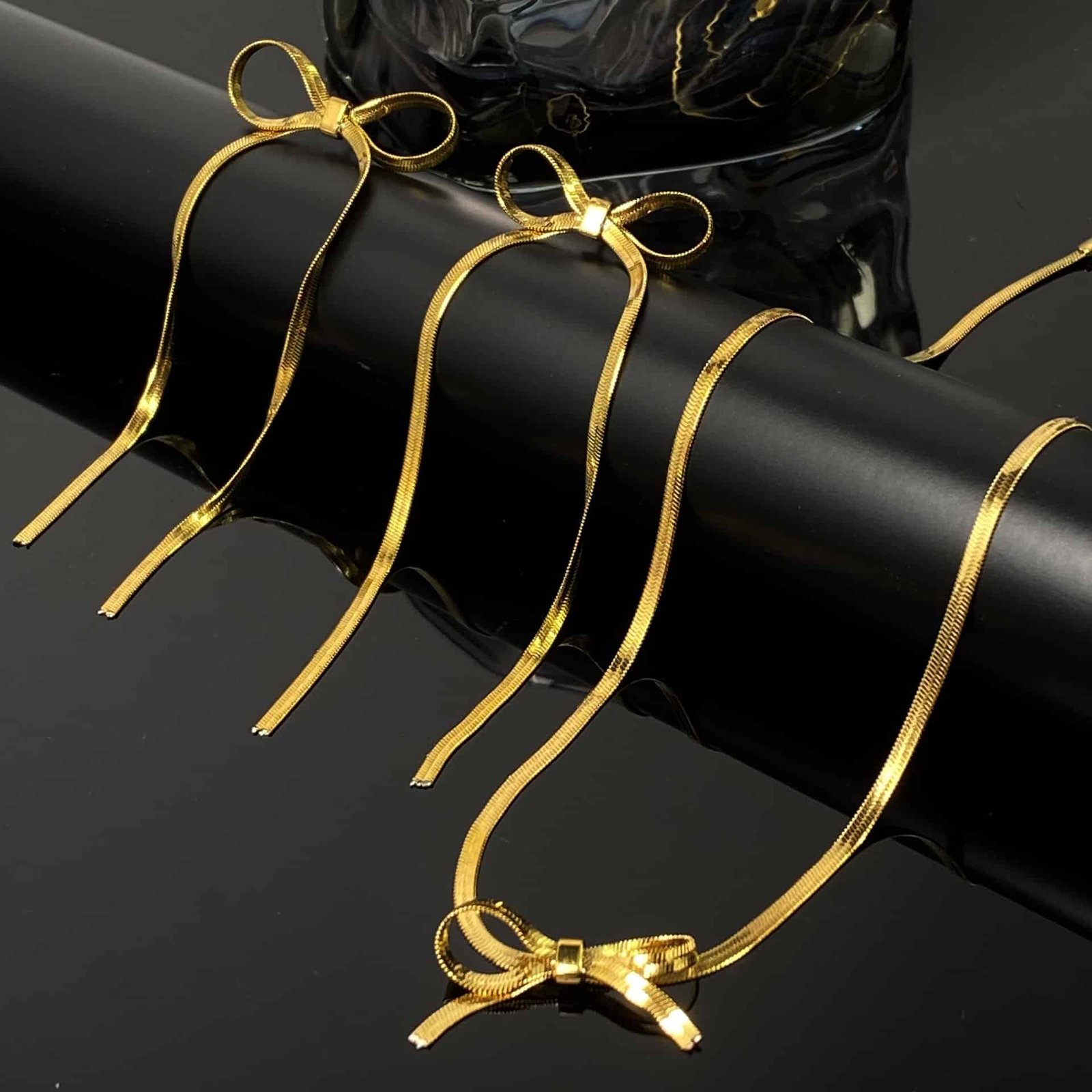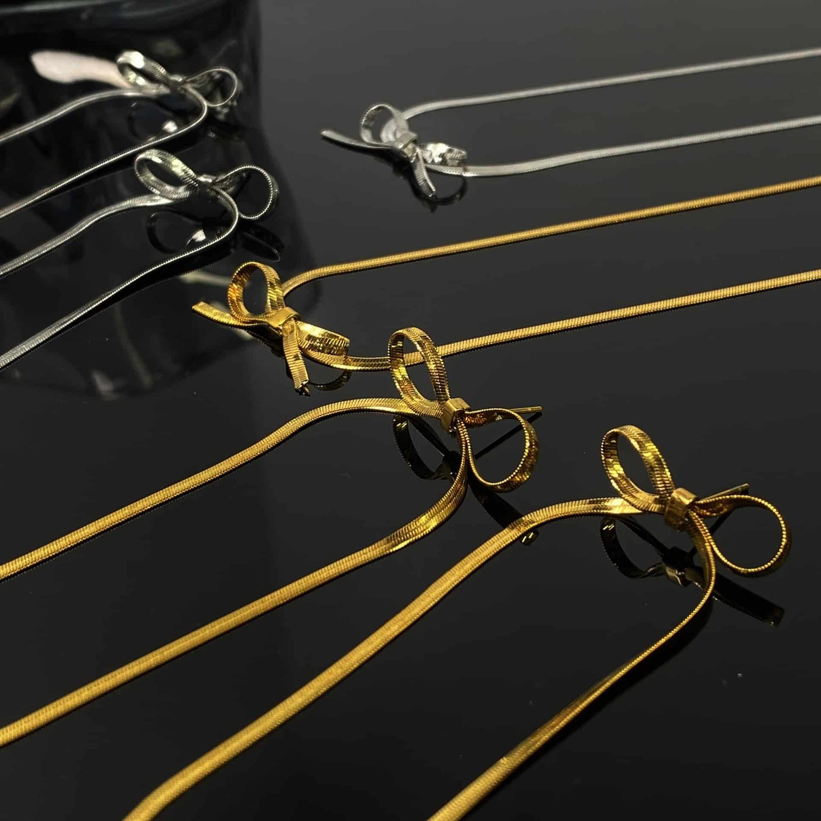Be the first to review “Simple Temperament Stainless Steel 18k Gold Side Bow Blade Chain Necklace Earrings Retro Set Wholesale for Women” Cancel reply