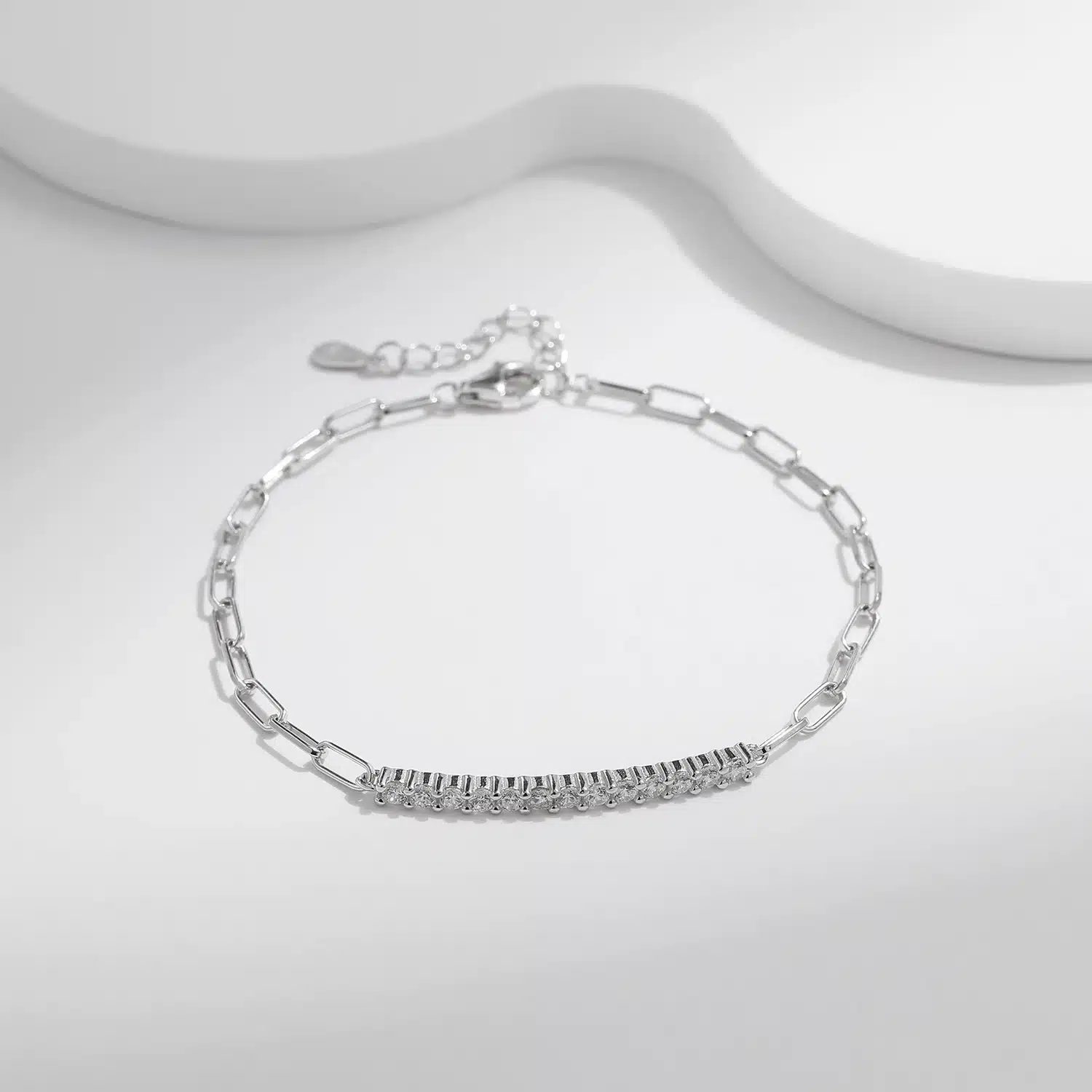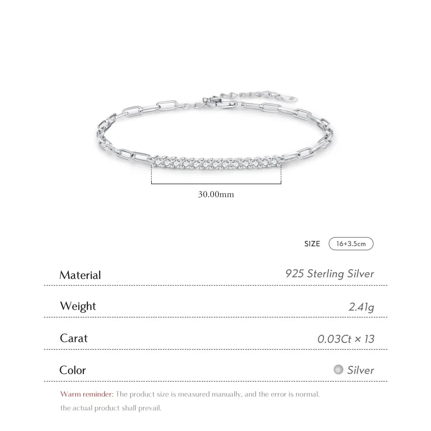 D Color VVS1 Cearl Round Moissanite Bracelets for Women 925 Sterling Silver Fashion Link Chain Bracelet Fine Jewelry