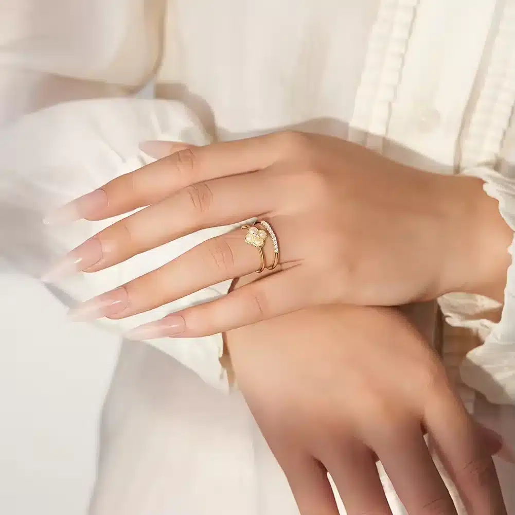 Custom Color Stone 925 Sterling Silver 18K Gold Plated Four-Leaf Clover S925 Silver 4-leaf Charm Rings Jewelry Lucky for Women