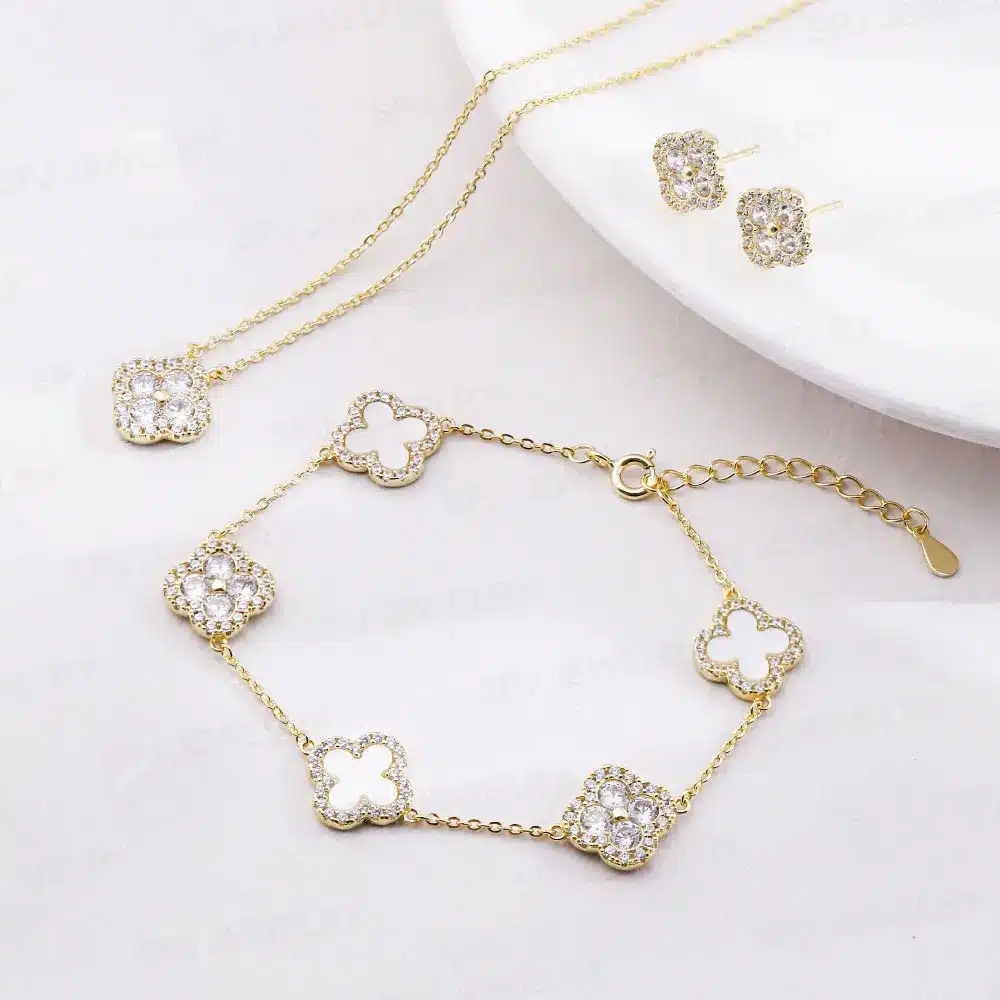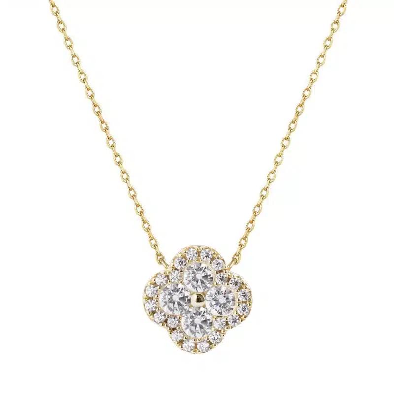 SPJ Full Cubic Zircon Four Leaf Clover Charm Necklaces 925 Sterling Silver Charm S925 Silver CZ Clover Necklace Necklace Jewelry